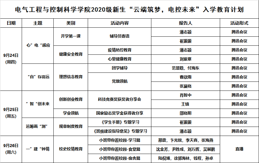 9月24日-26日,根据伟德bv国际19462020级新生入学教育前置的工作要求,伟德bv国际1946开展了“云端筑梦,电控未来”系列线上主题教育活动,2020级475名本科生新生参与了此次活动。