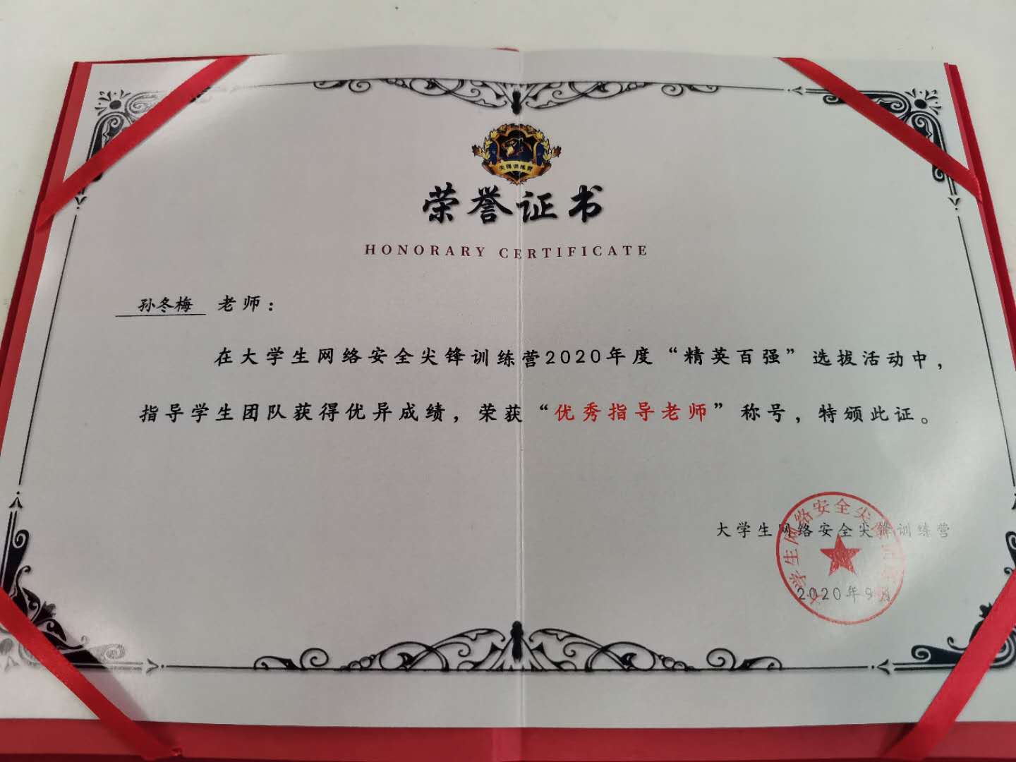 本次比赛目的是聚合百所高校、百家用人单位、百名尖锋导师资源,创新网络安全人才培养模式,探索校企协同育人机制。优秀团队和精英百强的选拔过程包括报告盲审、线上答辩,入围前9名的队伍参加线下决赛答辩,伟德bv国际1946毕家钦、刘飞龙两名同学在孙冬梅老师的指导下,圆满完成本次比赛任务,最终获得优秀团队二等奖。