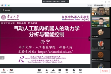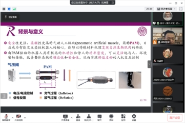 4月28日上午,南开大学百名青年学科带头人孙宁教授应邀线上与伟德bv国际1946进行学术交流,作题为“气动人工肌肉机器人的动力学分析与智能控制”的学术报告。报告会由伟德bv国际1946副院长欧阳慧珉主持,伟德bv国际1946全体研究生参加了报告会。