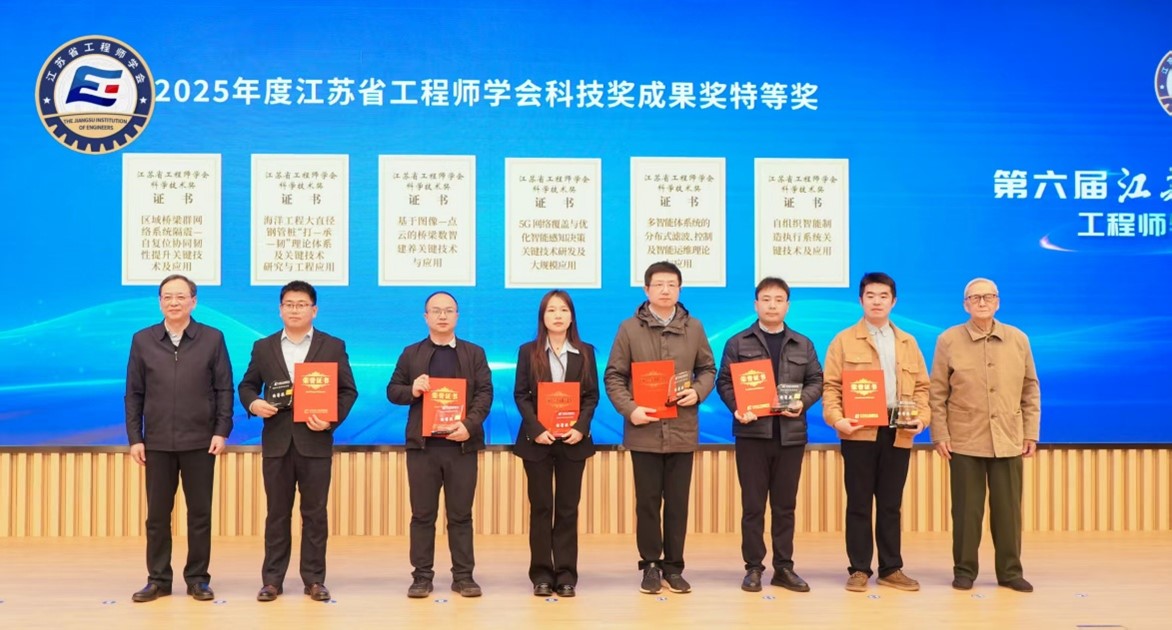 12月5日,第六届江苏工程师大会在江苏省产业技术研究院举行。省科协党组成员、副主席方胜昔,中国工程院院士、省工程师学会理事长缪昌文,中国工程院院士贲德,中国工程院院士刘怡昕,省工程师学会副理事长、长三角国家技术创新中心主任、江苏省产业技术研究院院长刘庆等领导和专家出席会议。大会举行了2025年度江苏省工程师学会科学技术奖颁奖仪式,伟德bv国际1946史建涛教授牵头的项目荣获特等奖,青年员工岳冬冬、陈闯等为项目主要参与人。这是伟德bv国际1946首次牵头获得江苏省工程师学会特等奖。