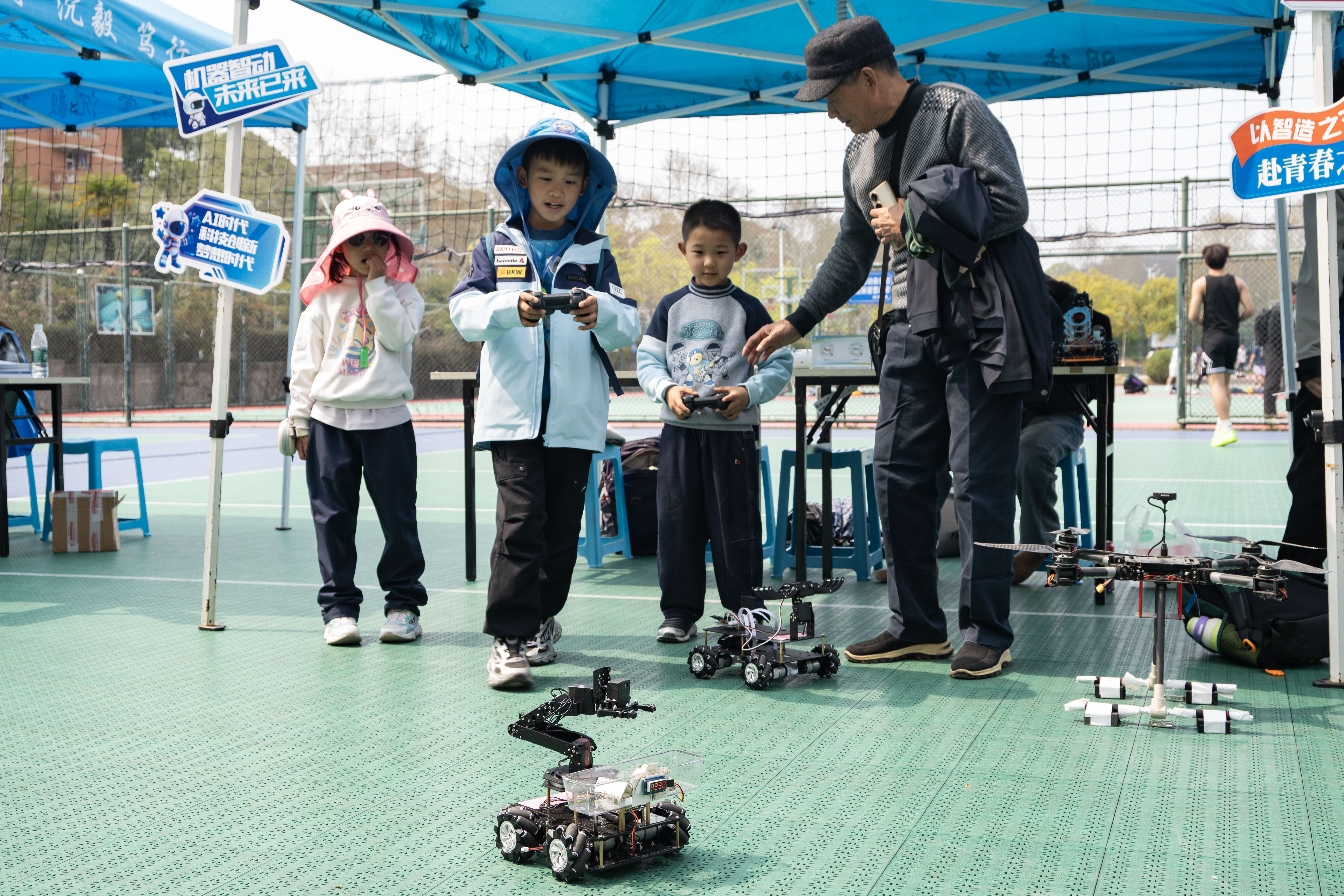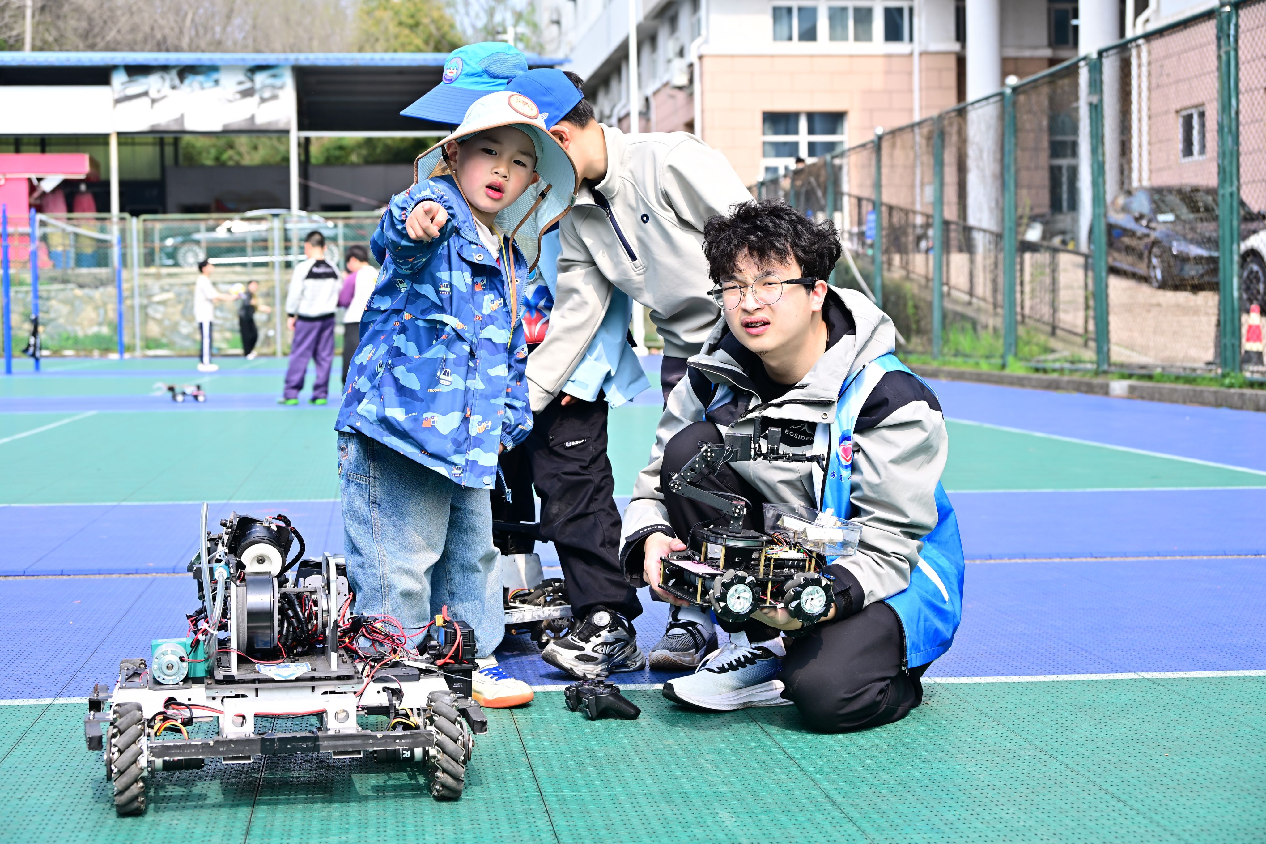 4月1日下午,东苑篮球场变身“科技嘉年华”,伟德bv国际1946“玩转机器人·点亮人生梦”主题的专业路演活动精彩上演。本次路演将前沿科技带出实验室,让儿童近距离感受机器人魅力,现场气氛热烈。