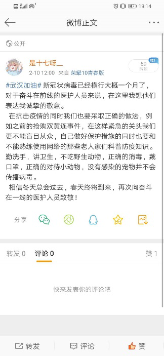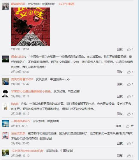 新冠肺炎疫情深深牵动着每一位中国人的心。伟德bv国际1946学子虽然宅在家中,但时刻关注着疫情动态,通过网络表达众志成城抗疫情的信心和决心,为湖北为武汉加油,向奋战在一线的“逆行者”致敬!