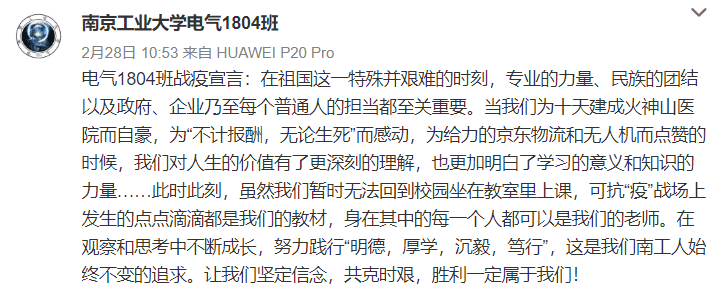 除了班级集体行动外,许多同学也纷纷运用网络新媒体发声,协助做好疫情防护宣传、政策措施解读、健康防护知识科普、稳定社会情绪等有关工作。