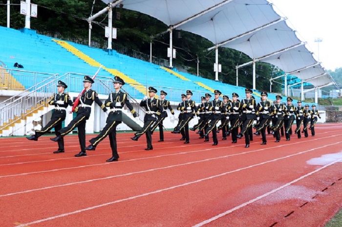 活动伊始,国旗护卫队进行了队列表演,向同学们展示了稍息、立正、跨立、齐步走、正步走、跑步走等,动作整齐利落,步伐矫健有力,精神风貌积极昂扬。随后,国旗护卫队旗手讲解了国旗法,普及了保护国旗、爱护国旗的法律常识。随后,升国旗仪式正式开始,同学们伴着雄伟庄严的国歌,同学们面朝国旗,全体肃立,行注目礼。礼毕,伟德bv国际1946员工代表蒋谦进行了国旗下讲话,他呼吁同学们在校期间增强学习紧迫感,如饥似渴、孜孜不倦学习,增长知识、锤炼品格、增长才干、练就本领。