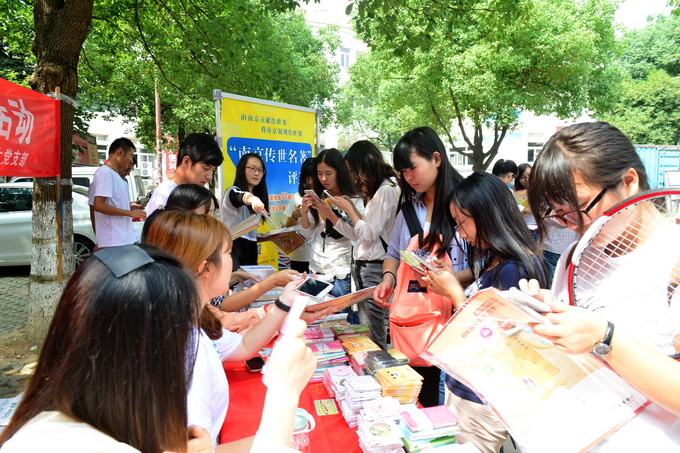 由于宣传到位,活动开始就吸引了众多师生的关注。党支部成员在发放《南京传世名著推荐手册》的过程中,热情细致的给参与者讲解活动性质及其意义。推荐同学们阅读手册,领略名著的魅力,明晰历史的底蕴。引起了大家的阅读兴趣,推广了名著影响范围。在投票环节,参与者通过手机扫二维码的方式在公众号中投票选出自己已经阅读过的或者心仪的想要阅读了解的名著。