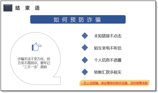 本次主题班会,进一步提高了研究生防范诈骗的知晓率和普及率,增强了研究生对各类诈骗的防范意识和自我保护能力,在全体同学中营造了“全民反诈在行动”的浓厚氛围,为共同筑牢校园反诈安全线起到了重要的推进作用。