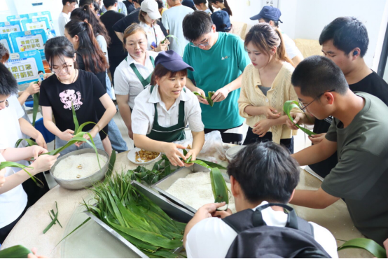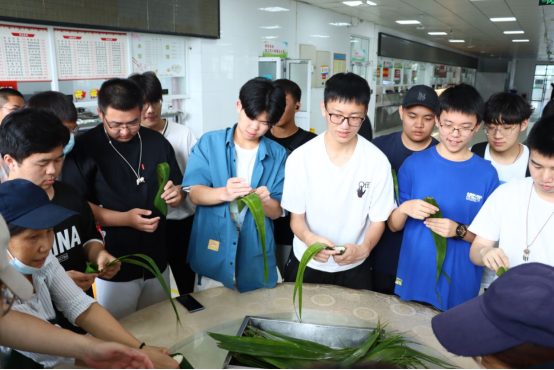 活动中,同学们表现出强烈的积极性、展现出极大的兴趣,在食堂阿姨的悉心指导下,他们学习了包粽子的方法,并尝试包出属于自己的粽子。他们从对包粽子一无所知,到能够完整地包出一个合格的小粽子,体会到了劳动的快乐。活动最后,团支书陈青枝同学为大家上了一堂生动端午知识课,从端午节由来、文化内涵到传统习俗娓娓道来,引导同学们通过创新创造实现赶超发展。