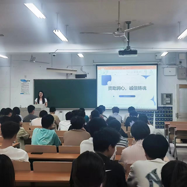 讲座中,刘欣老师详细介绍了伟德bv国际1946国家资助、伟德bv国际1946奖助、社会捐助、员工自助“四位一体”的发展型资助体系,包含“奖、助、贷、勤、补、免”等评选标准与条件。刘欣老师列举优秀员工案例,激励各位同学树立感恩国家的意识,珍惜国家资助的机会,勤奋刻苦,自强不息,为社会和国家的发展贡献自己的力量。从“诚信”切入,刘欣老师引导大家思考诚信的重要性,普及了不良的个人征信记录对未来信贷、出行、就业、家人的影响,倡导同学们诚信待人,诚信处事,诚信学习,诚信立身,加强金融安全防范意识,谨防电信诈骗。
