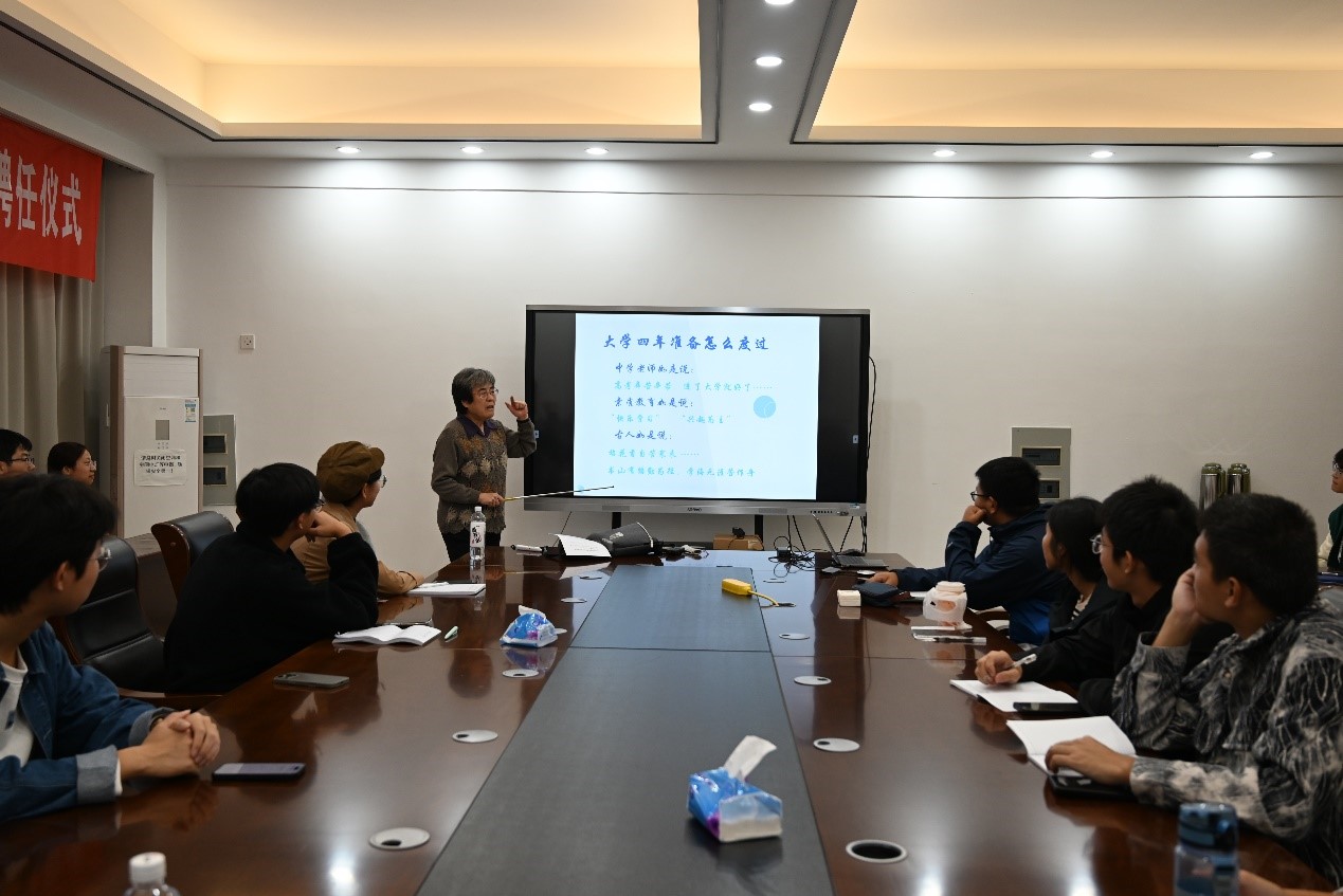 座谈会上,张湜教授结合自己数十年的教学科研与人生阅历,从学习规划、能力塑造、个人成长等多个维度为新生们带来了一场充满智慧与温情的“大学第一课”。她鼓励同学们夯实专业基础,注重实践创新与团队协作,全面提升综合素质,学会与人相处,保持身心健康。在随后的互动环节中,同学们踊跃提问,围绕专业前景、科创竞赛、时间管理、社团活动等多个方面寻求建议。张湜教授逐一给予了耐心细致的解答,她风趣幽默的语言和饱含智慧的见解,引发了同学们的深深共鸣。