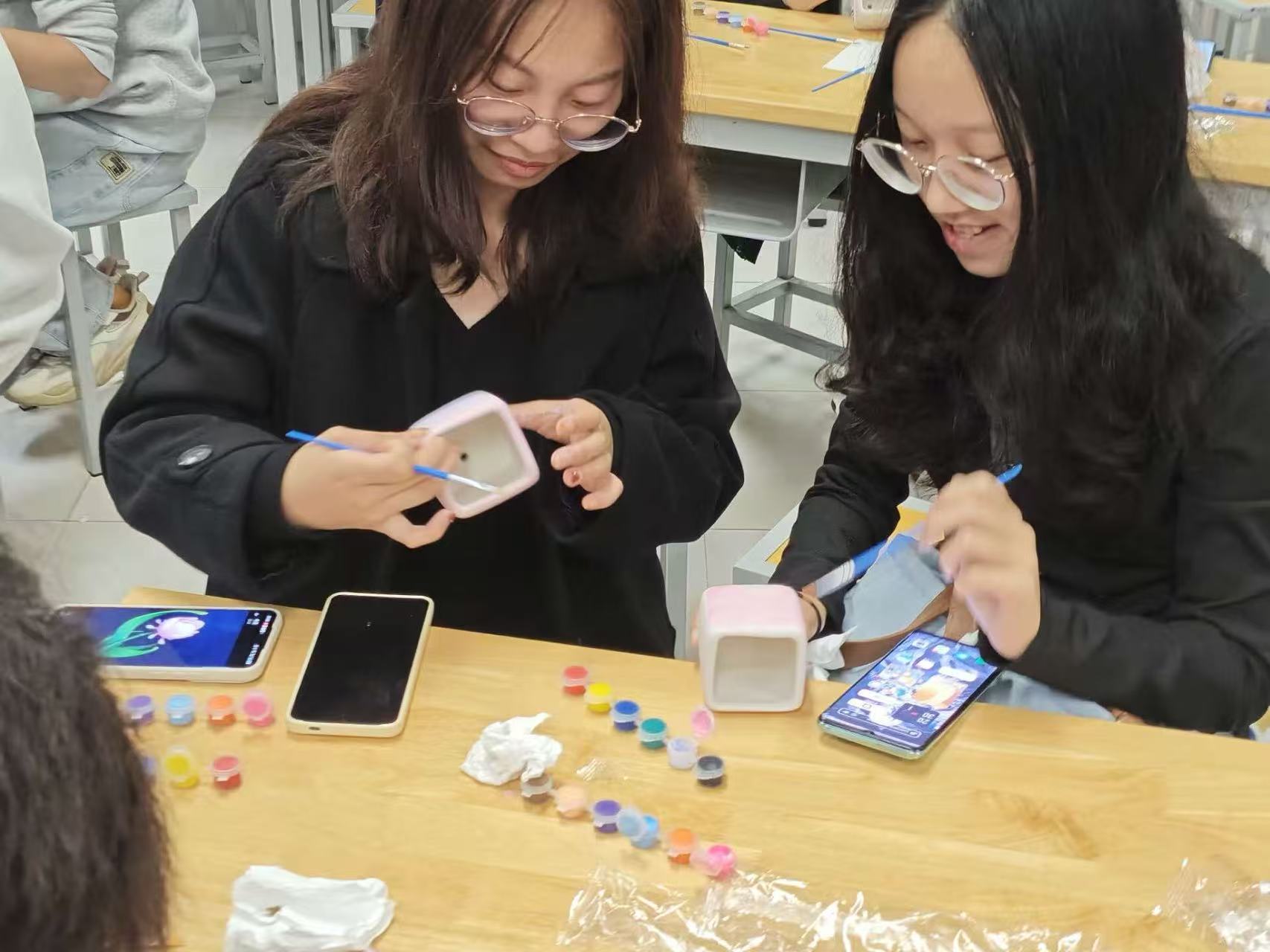 活动在班委精心布置的开放包容、轻松融洽氛围中展开,分为三个环节推进。开场“大风车”游戏迅速点燃气氛,同学们的灵活互动打破了彼此间初识隔阂。随后的“生日排序”环节仅凭手势与暗号默契配合精准完成出生顺序排序,无声协作间悄然凝聚起班级向心力。作为核心环节,花盆手绘与多肉种植将氛围推向高潮,同学们以独特巧思与个性表达用画笔在素白花盆上勾勒卡通、景致与成长寄语,再小心翼翼地投入多肉种植,从铺土、放苗、压实到浇水真切感受着创造的乐趣与收获的成就感,在实践中培养了耐心与责任感,深化了对生命的敬畏之心。