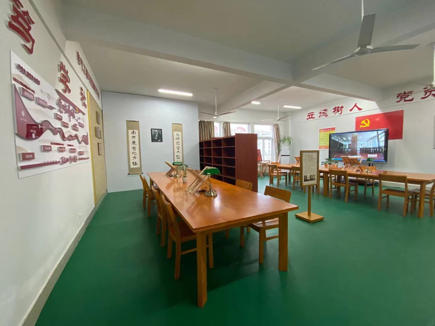 会前,参会人员观看了宣传部和伟德bv国际1946联合制作的党史学习教育微视频《家乡党史故事》,并现场调研了党员教育实境课堂“亢慕义斋”主题教育阵地。该阵地是伟德bv国际1946各党支部定期开展“三会一课”等党员教育的主要学习场所,目前真实还原了《百炼成钢》系列视频第一集“亢慕义斋”场景,收藏陈列了马列理论著作、党史学习教育必读教材、习近平新时代中国特色社会主义思想有关书籍、党建工作实务读本等4类图书,以及各类电子教育资源。