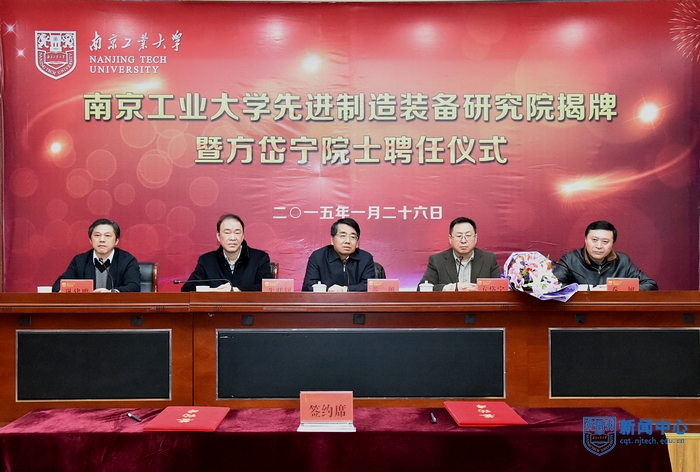 仪式上,校长黄维院士与方岱宁院士签订了聘任书,员工代表为方岱宁院士献花。副校长乔旭教授宣读了成立“先进装备制造研究院”及聘任方岱宁院士为先进装备制造研究院院长的文件,校长黄维院士和方岱宁院士共同为“先进装备制造研究院”揭牌。